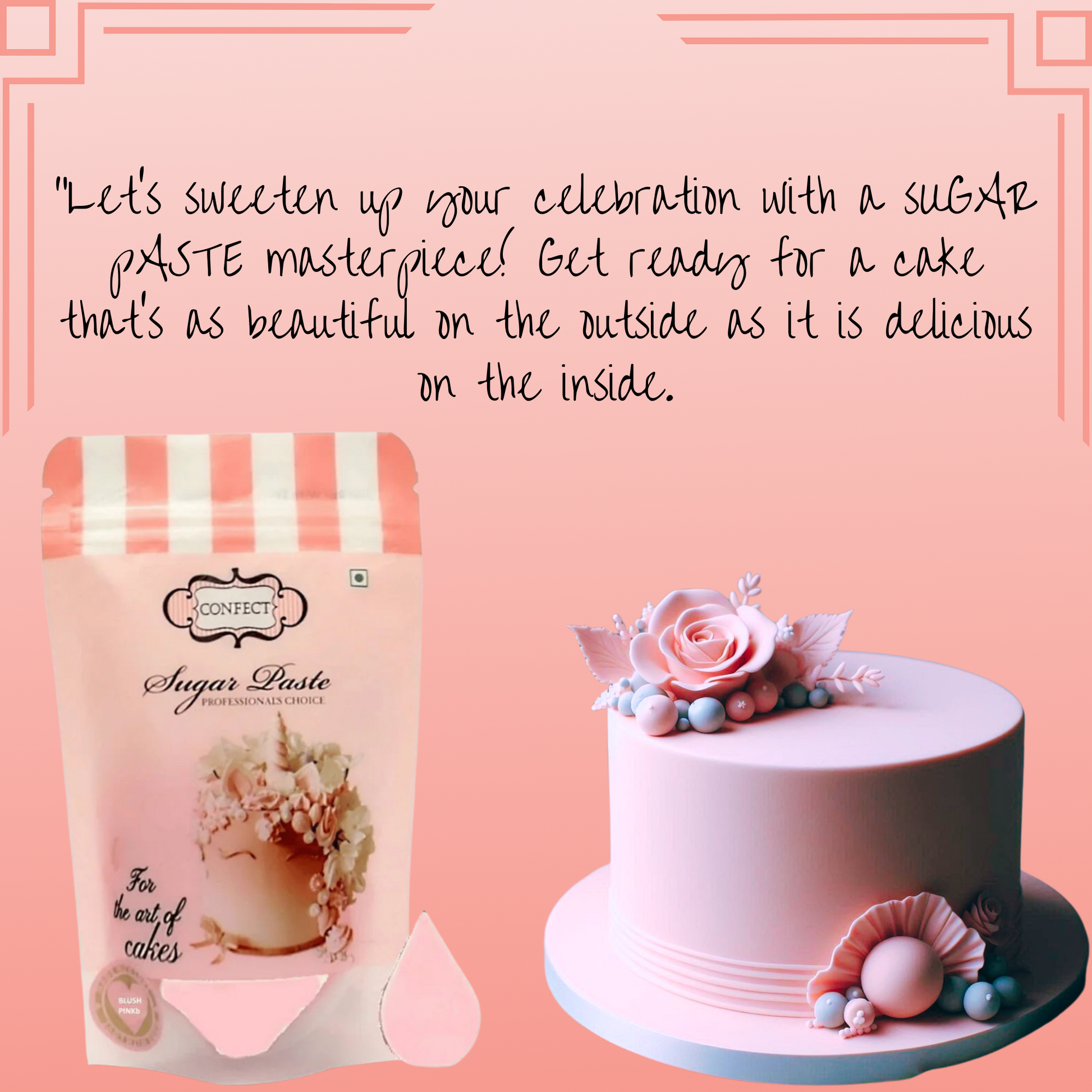 Create charming and elegant designs with Confect Blush Pink Sugarpaste! This soft, pastel fondant is perfect for adding a delicate touch to your cake decorating projects. With its smooth and pliable texture, it’s easy to work with and allows for intricate detailing. Ideal for weddings, baby showers, or any celebration that calls for a sweet and gentle touch!