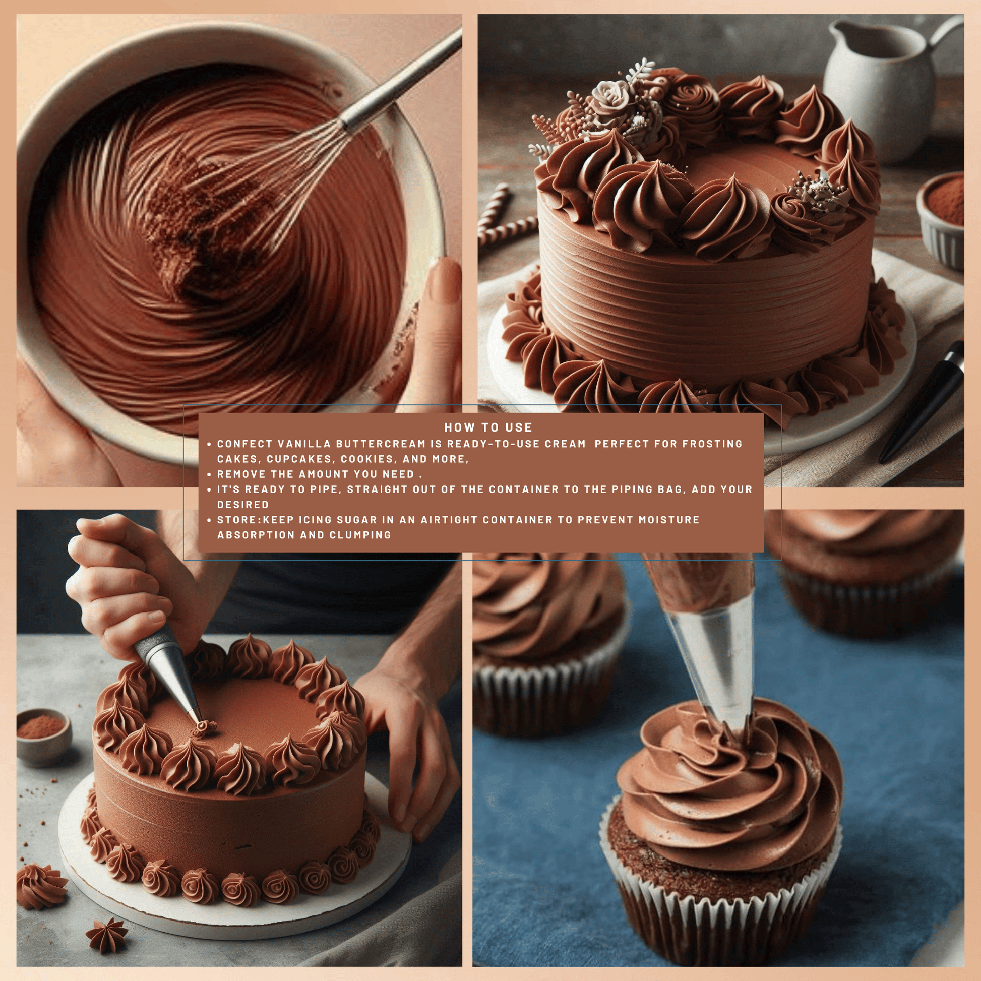 Confect Chocolate Buttercream is perfect for frosting cakes, cupcakes, cookies, and more, buttercream can be easily flavored and colored to suit any baking project.