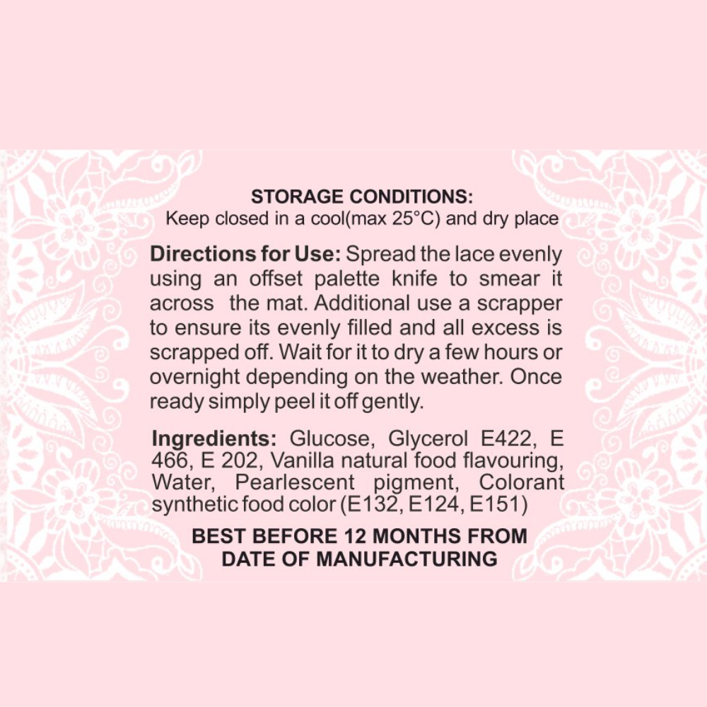PERFECT FINISHING TOUCH! Confect edible lace mix is used to create a beautiful lace pattern for your cakes and cupcakes.