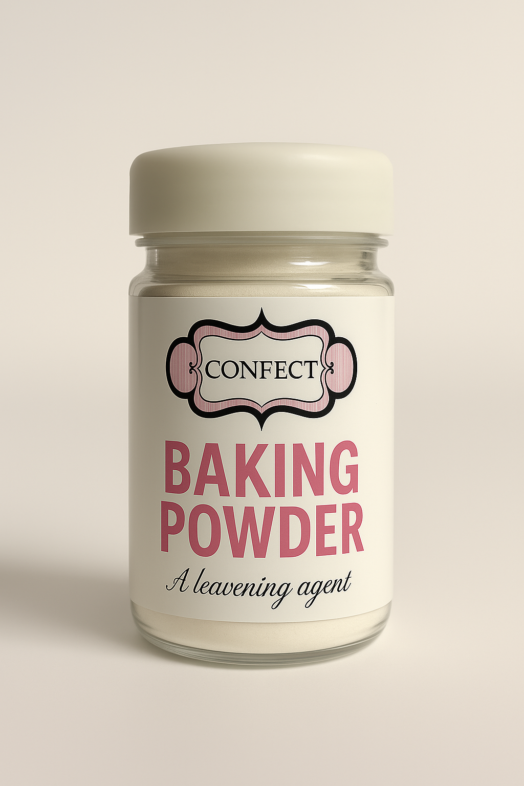 - Use Confect Baking Powder in cake batters to achieve a light, fluffy, and perfectly risen cake.