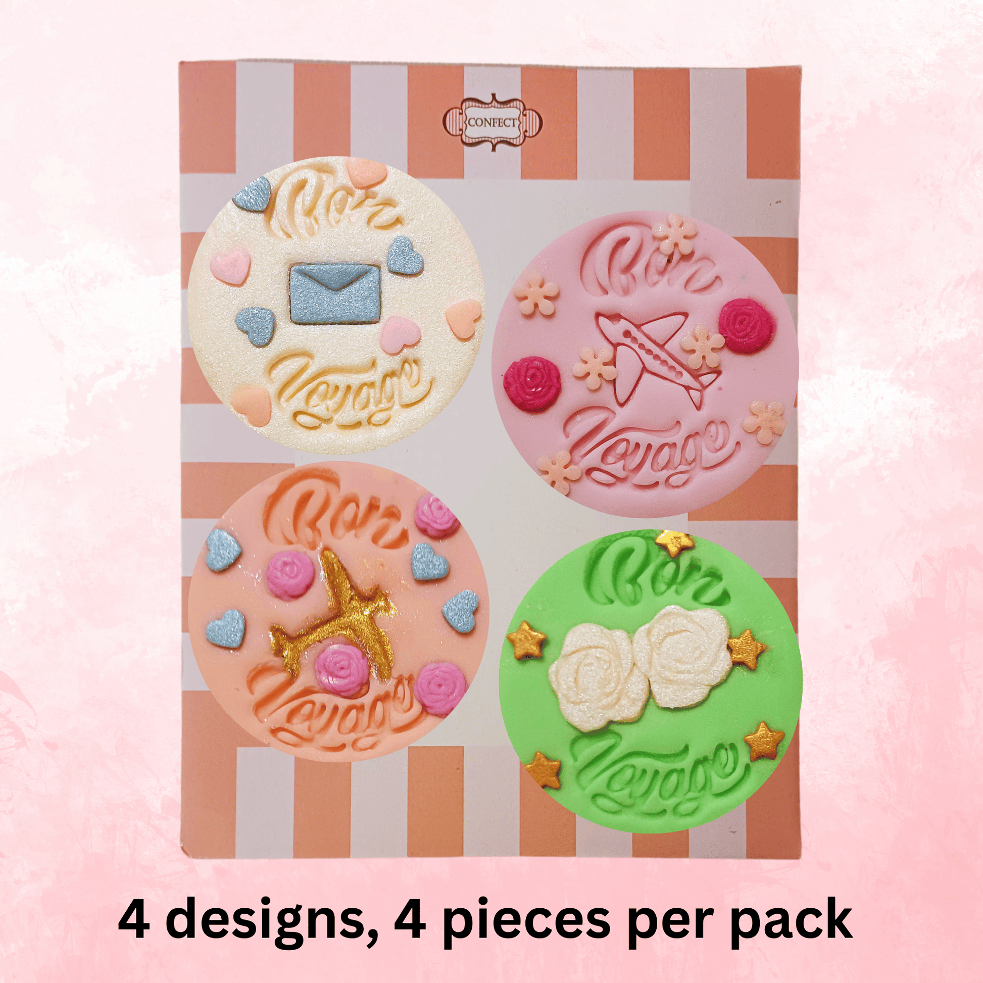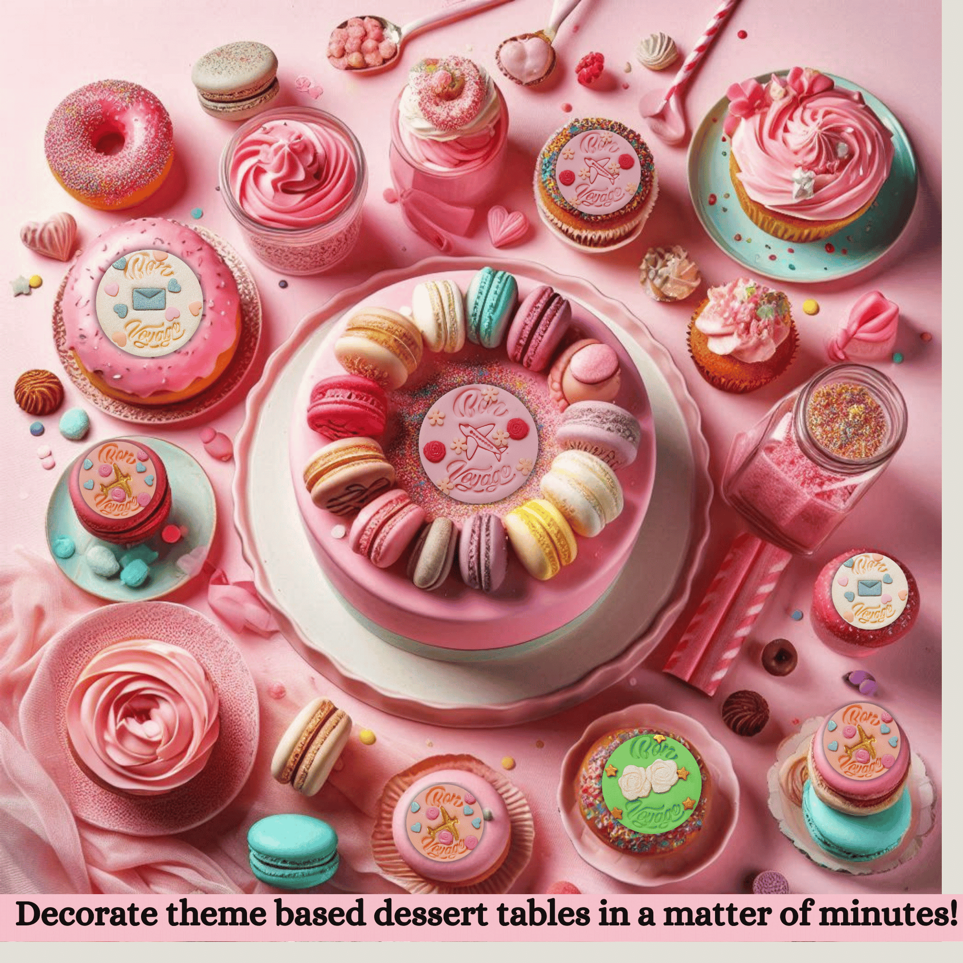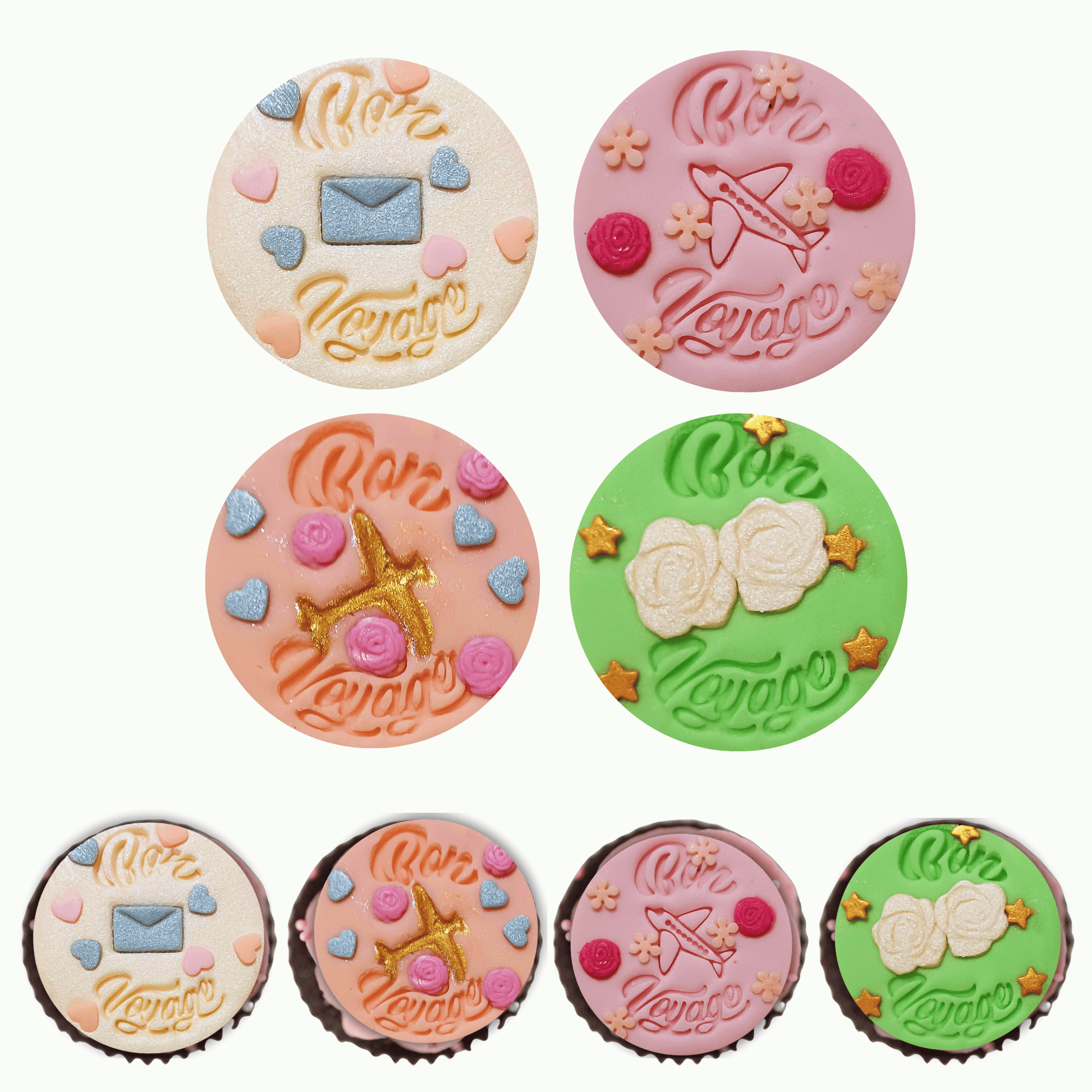- Make beautiful designs for your fondant toppers , decorate cupcakes, cakes, cakesicles and much more. Happy Birthday, Happy Anniversary, Congrats, Congratulations, Bon Voyage & Get well soon a loving message that can not be missing in your Celebration Treats box