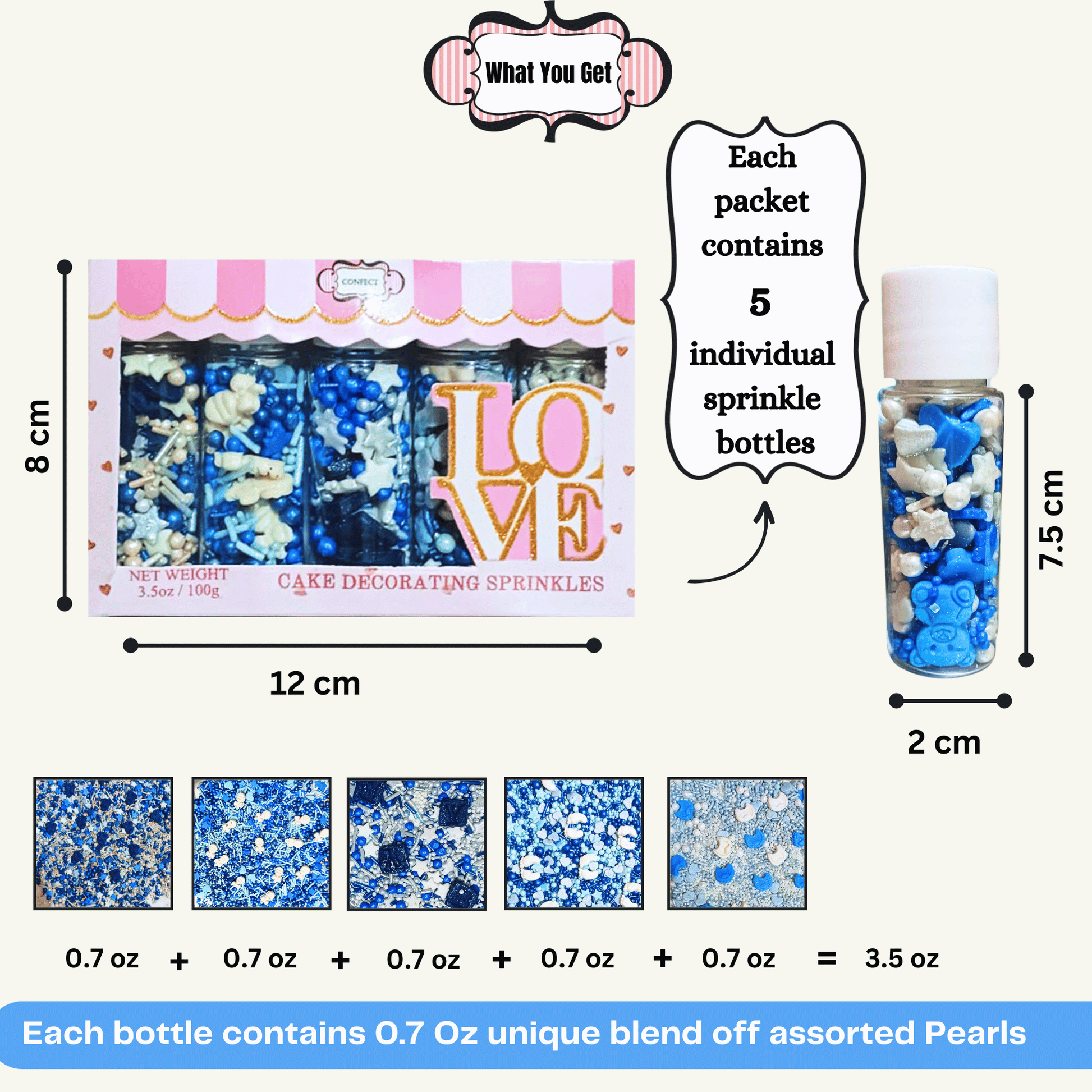 Confect Boys Baby Shower Sprinkles | Baby Blue Sprinkles for Cake & Cupcake Decorating Pack Of 5 (BABY SHOWER -32)