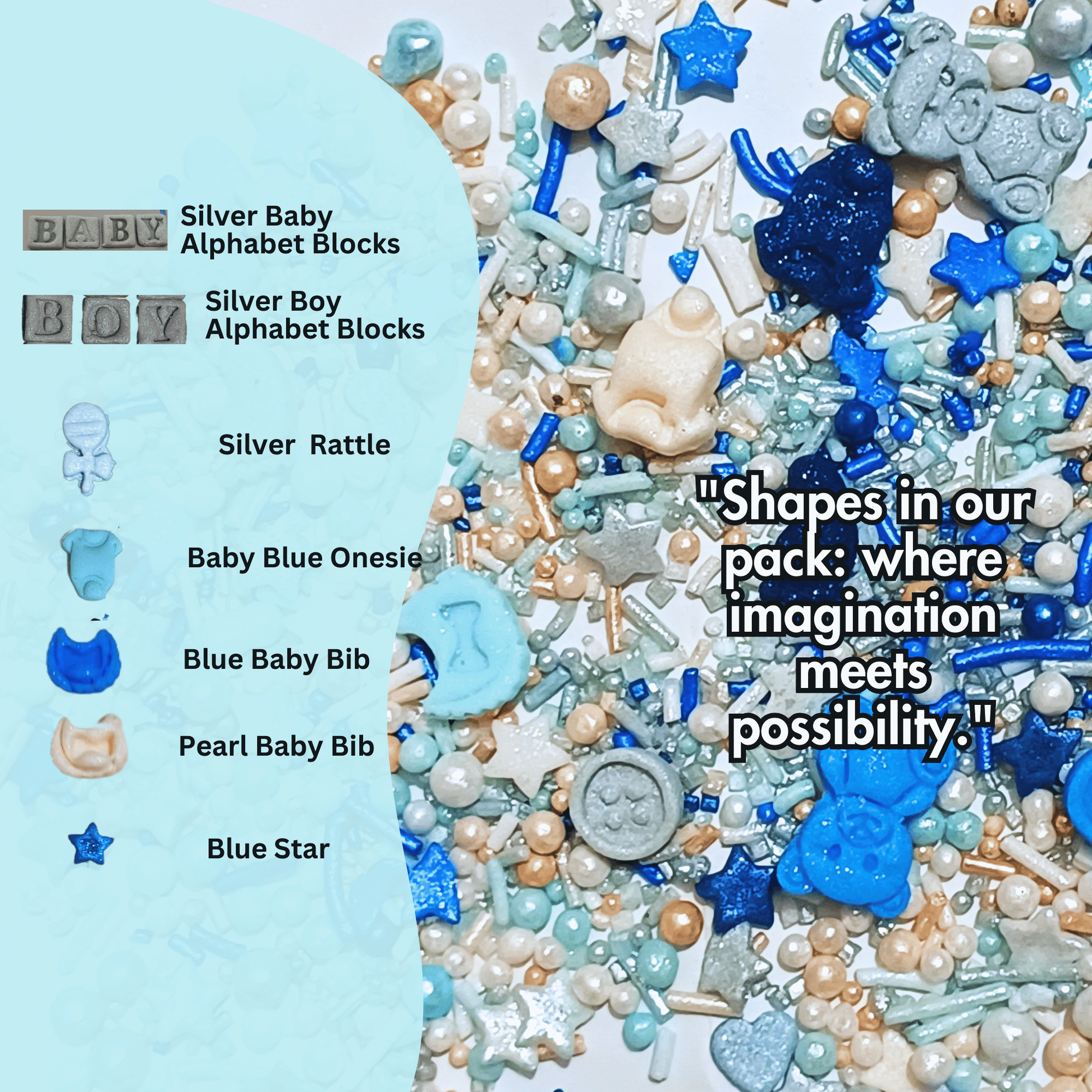 Celebrate the upcoming arrival with our Premium One-of-a-Kind Baby Shower Sprinkles, where each sprinkle adds a touch of elegance, whimsy, and joy to your sweet creations.
