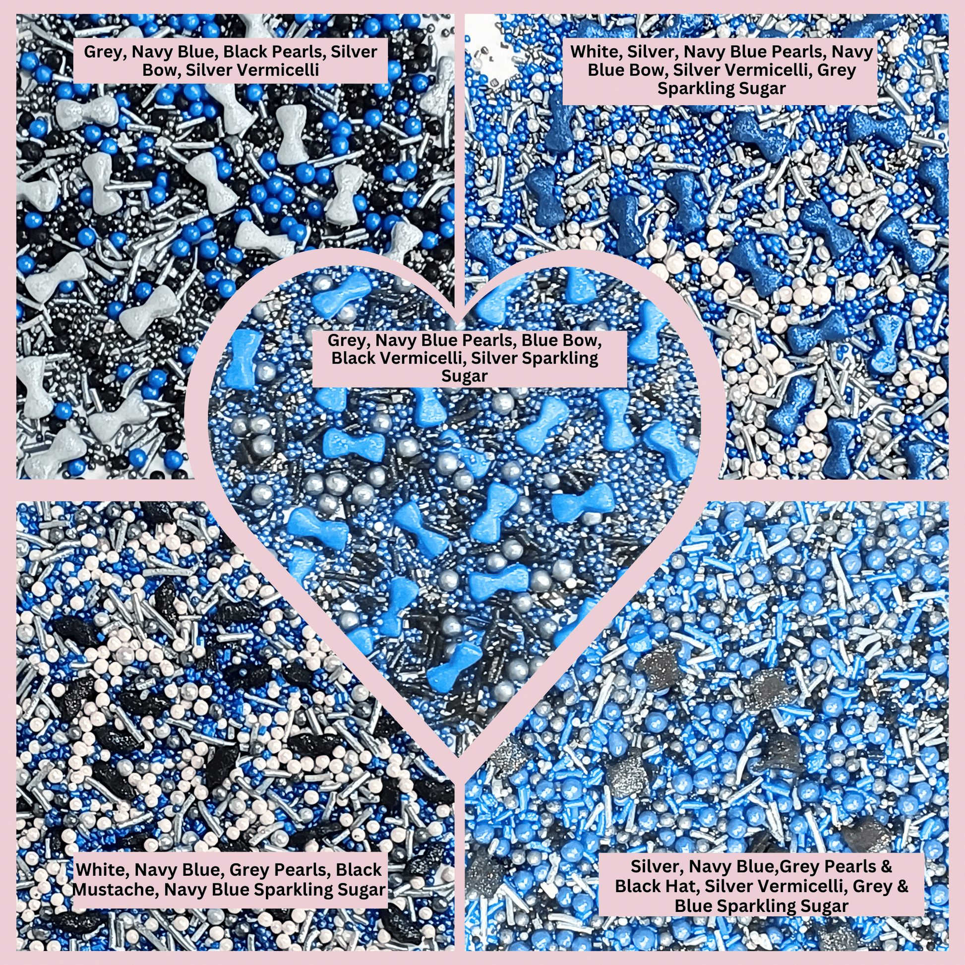 Honor and celebrate the special men in your life with our Celebration Sprinkles, designed to bring joy and festivity to any occasion. This unique blend features playful shapes like moustaches, sunglasses, bow ties, and hats. Each jar contains a sophisticated mix of silver, gold, blue, and black colors, adding a touch of class and celebration to your Father's Day treats. The collection consists of unique playful shapes like moustaches, sunglasses, bow ties, and hats. This range is a blend of sophisticated colors silver, gold, blue & black. . Perfect for Father's Day, birthdays, anniversaries, or any special event, these sprinkles add a touch of class and fun to your treats.