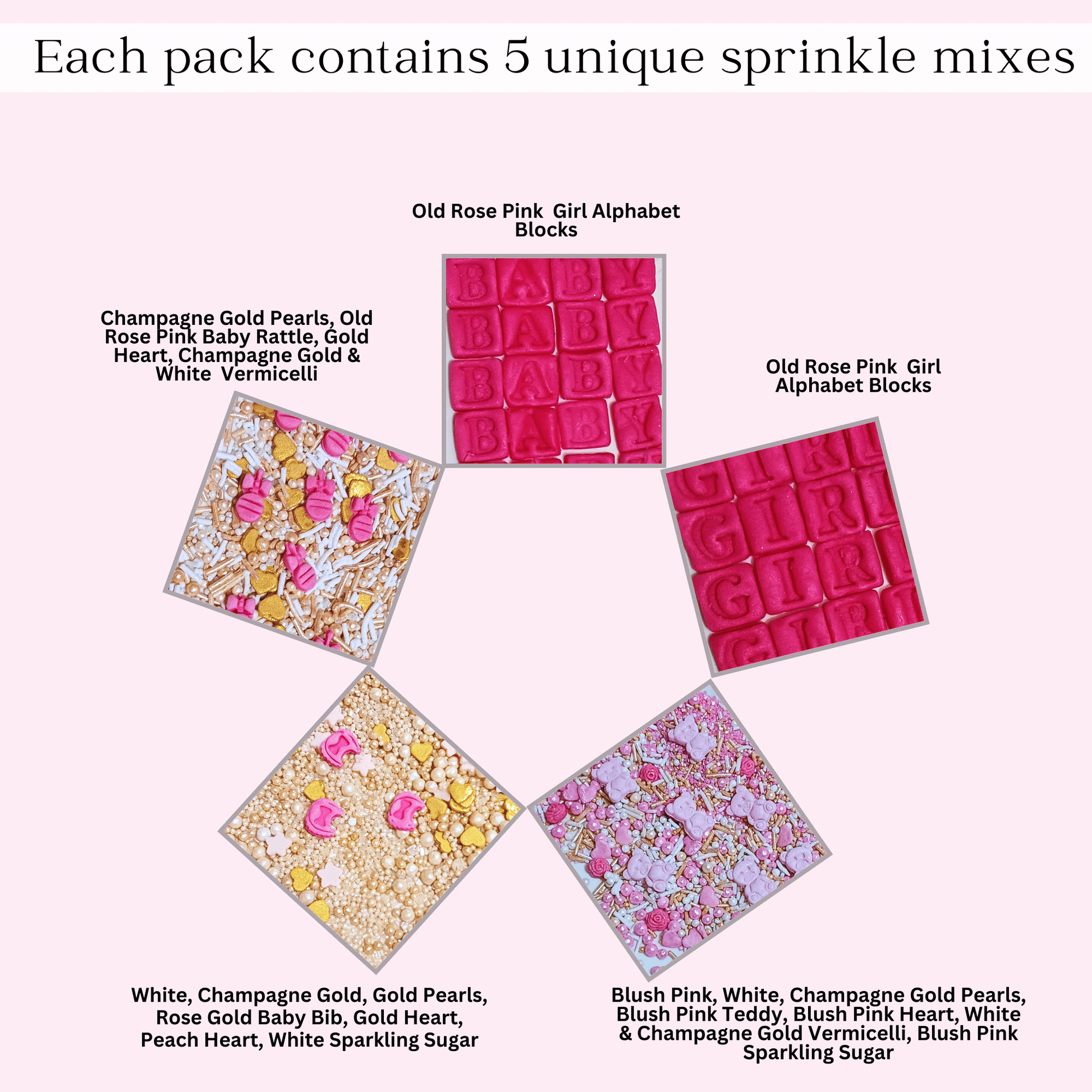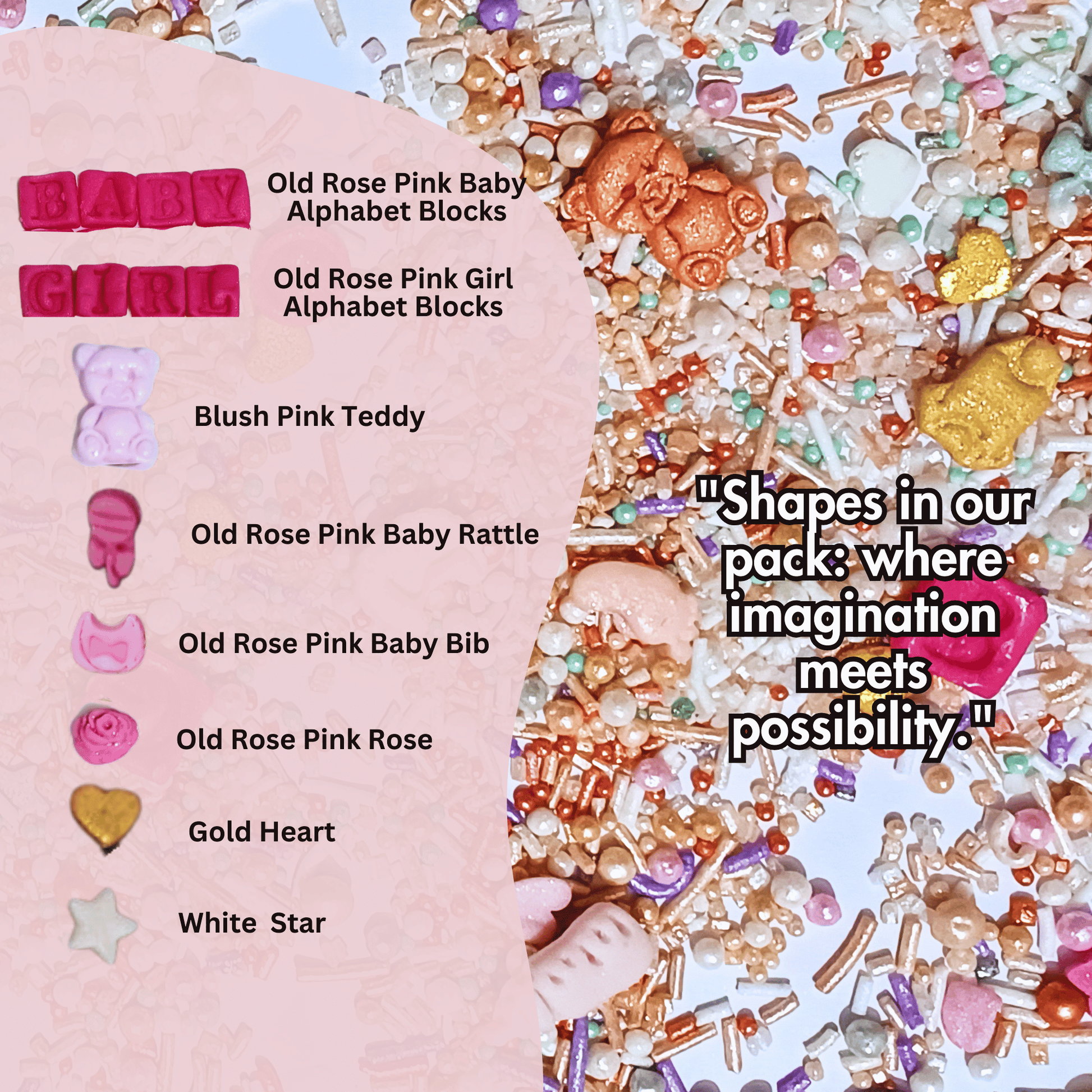 Confect Girls Baby Shower Sprinkles | Mix Heart, Teddy, Baby Feed Bottle & Baby Feet Sprinkles Pack of 5 (BABY SHOWER -22)
