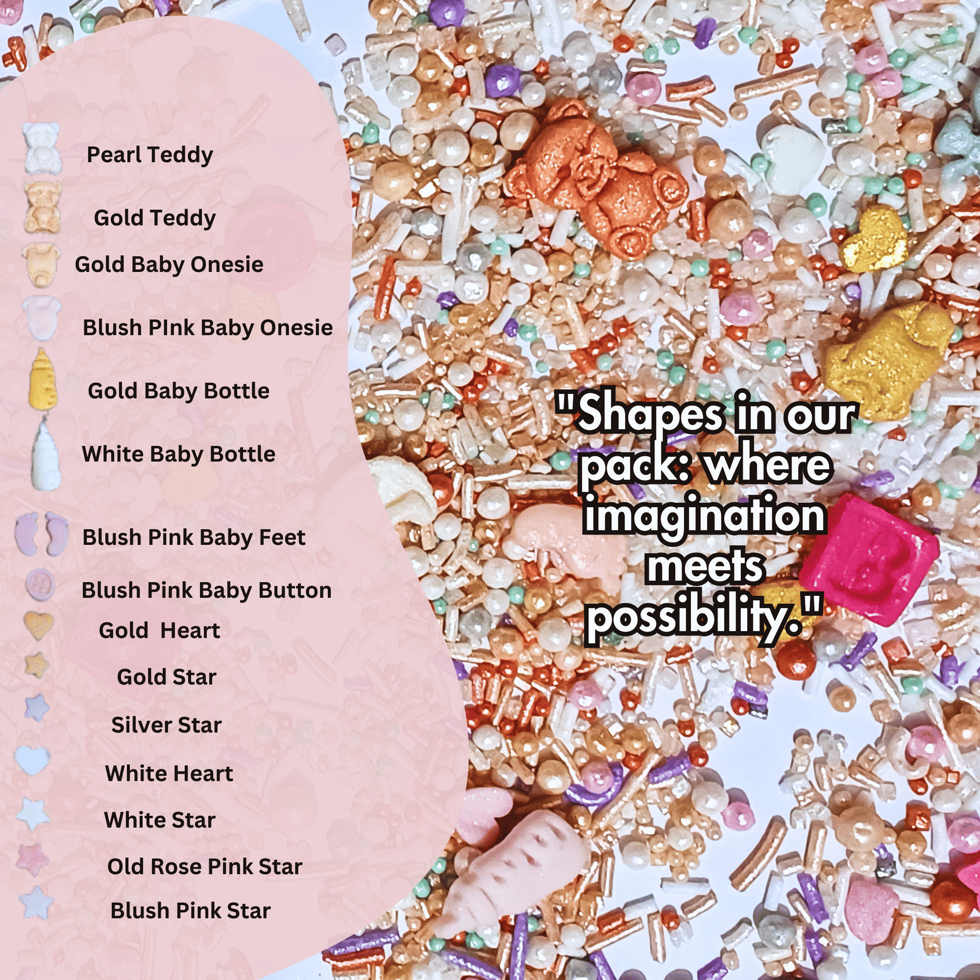 Celebrate the upcoming arrival with our Premium One-of-a-Kind Baby Shower Sprinkles, where each sprinkle adds a touch of elegance, whimsy, and joy to your sweet creations.