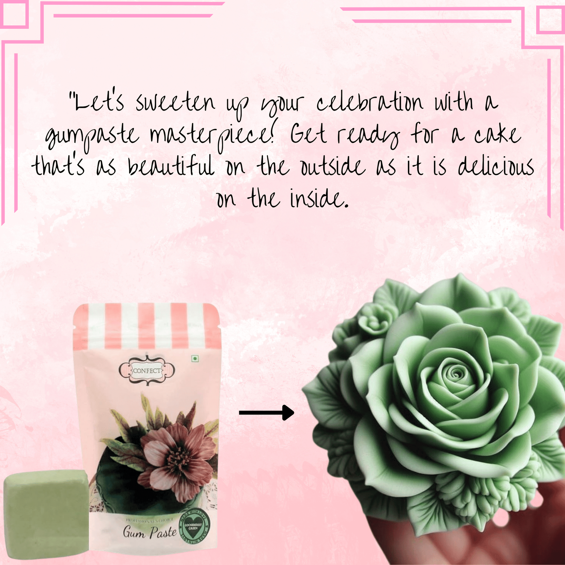 Product Description: Confect Gumpaste for Flowers is a premium, 100% vegetarian, Jain-friendly, nut-free, dairy-free, and gluten-free product, specially crafted for creating delicate cake decorations like flowers, leaves, bows, ribbons, and figurines. Ready to use and designed for high flexibility, it is ideal for bakers and cake artists looking to achieve a flawless, intricate finish without the usual issues of tearing or cracking.