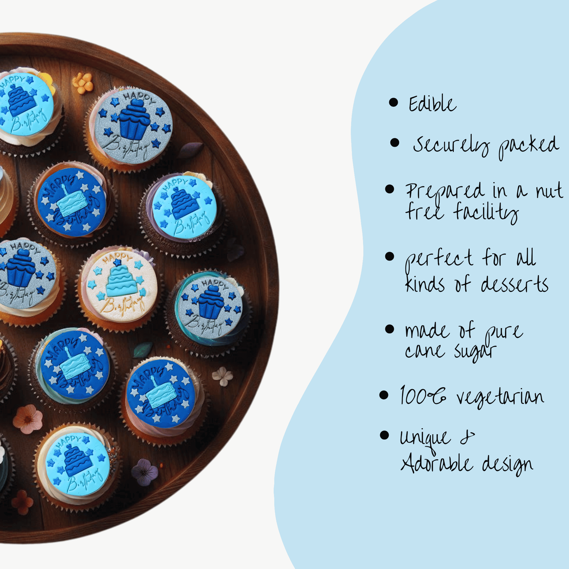 • Edible Birthday, Anniversary, Get well soon, Bon Voyage & Congrats Cupcake Toppers, Mixed colors & Style. Easy to use, so you can insert into your cake directly, which make your cake more beartiful and interesting.