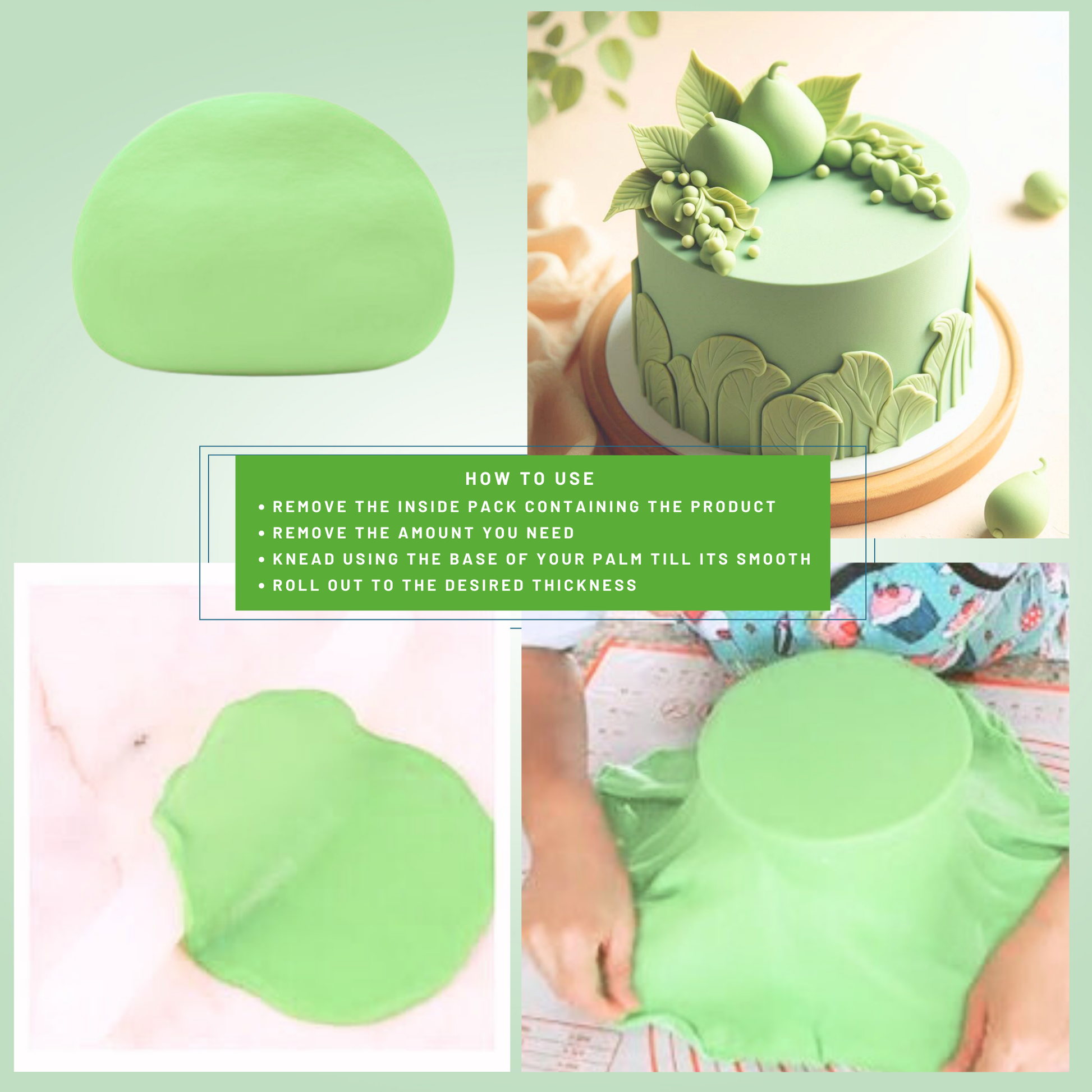 Its smooth and pliable texture allows for easy handling and prolonged workability, providing stunning results without cracking or drying out too quickly. The lively pea green shade pairs beautifully with other edible decorations, enabling you to create harmonious and appealing designs.