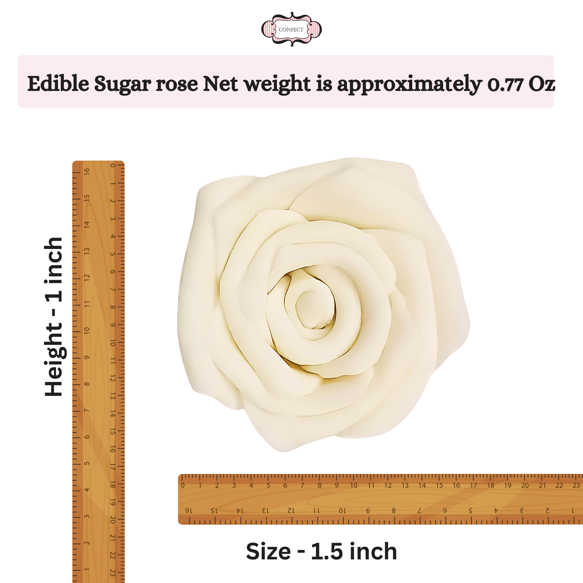 • Contains no floral wires making them safe to consume. Each pack contain 12 sugar roses – approximately 1.5 inches in size, weighing 0.77 Oz each