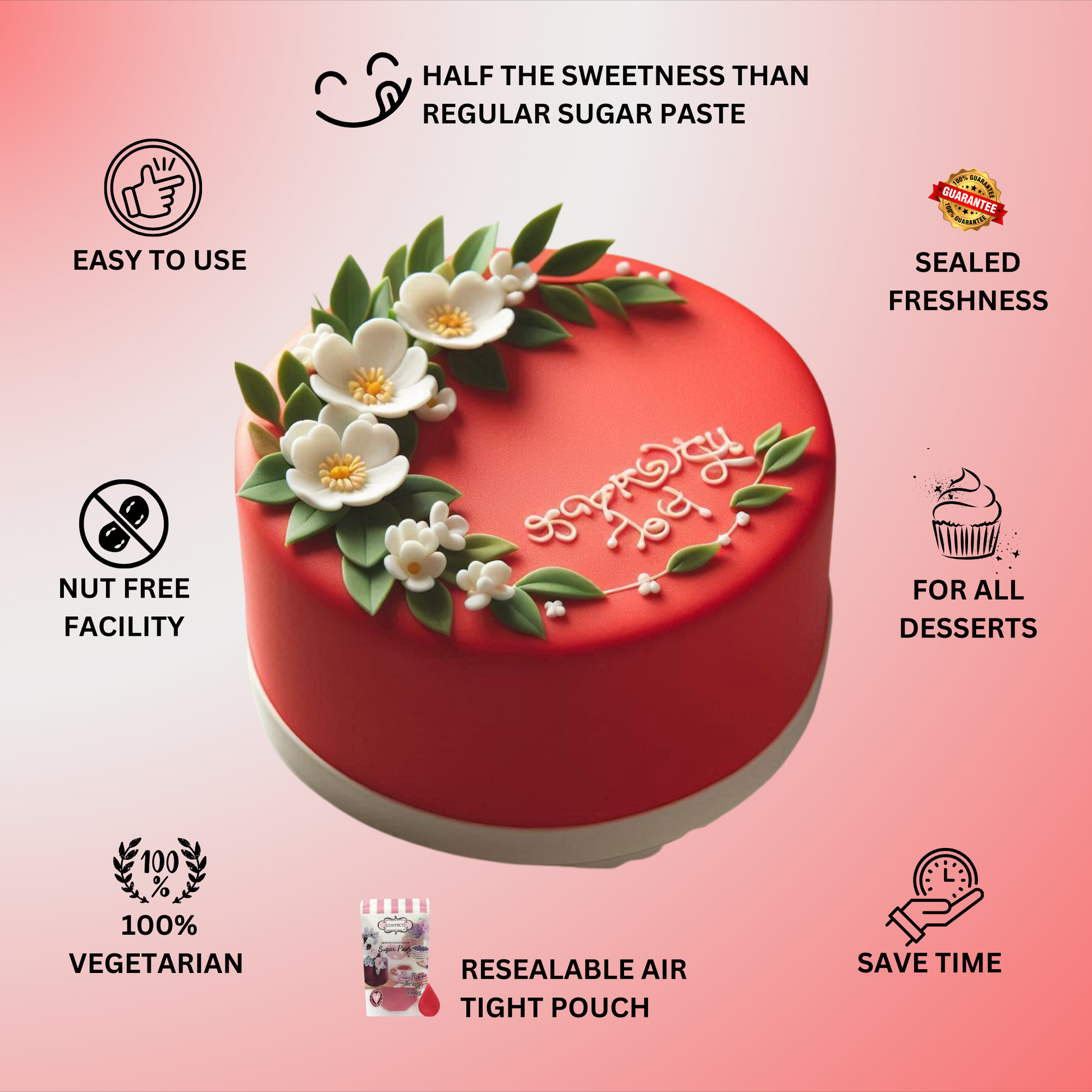 Its smooth and pliable texture allows for easy handling and prolonged workability, providing stunning results without cracking or drying out too quickly. The rich red shade complements other edible decorations, making it easy to create visually appealing designs that catch the eye.