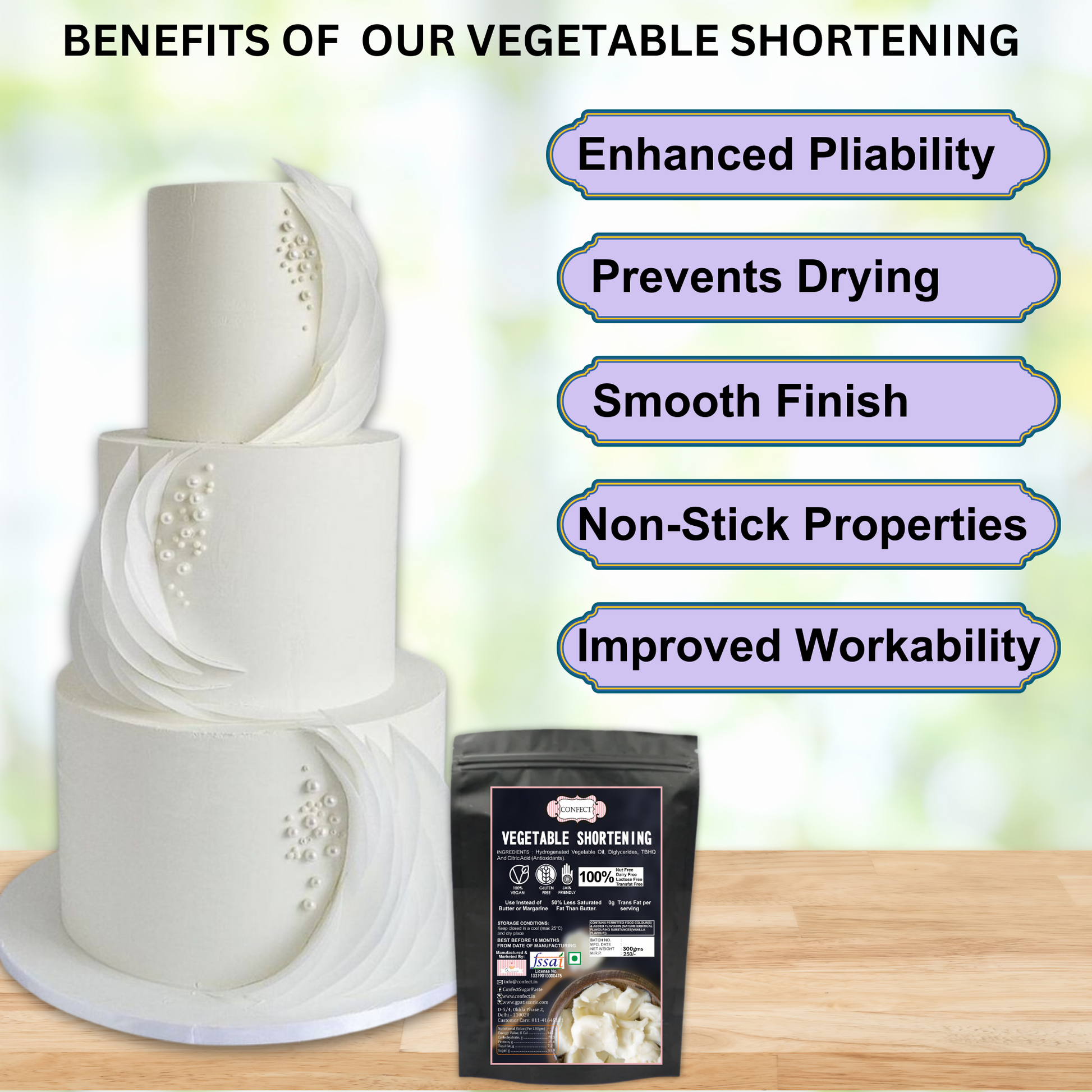 Confect’s premium Vegetable Shortening is a versatile tool for working with fondant, enhancing its texture, pliability, and workability. It can be used to prevent fondant from drying out, help with kneading, and smooth surfaces for a polished finish.