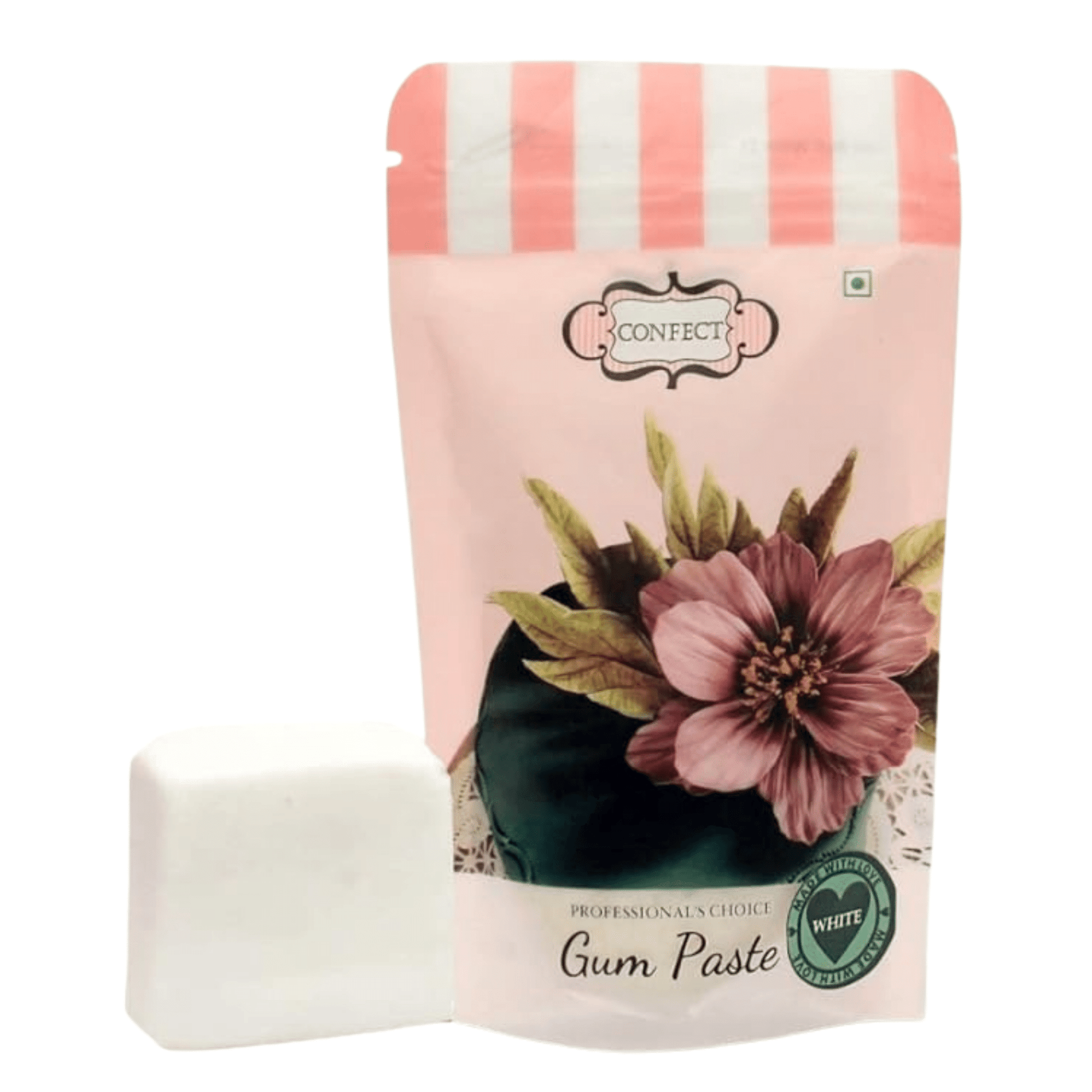 Product Description: Confect Gumpaste for Flowers is a premium, 100% vegetarian, Jain-friendly, nut-free, dairy-free, and gluten-free product, specially crafted for creating delicate cake decorations like flowers, leaves, bows, ribbons, and figurines. Ready to use and designed for high flexibility, it is ideal for bakers and cake artists looking to achieve a flawless, intricate finish without the usual issues of tearing or cracking.
