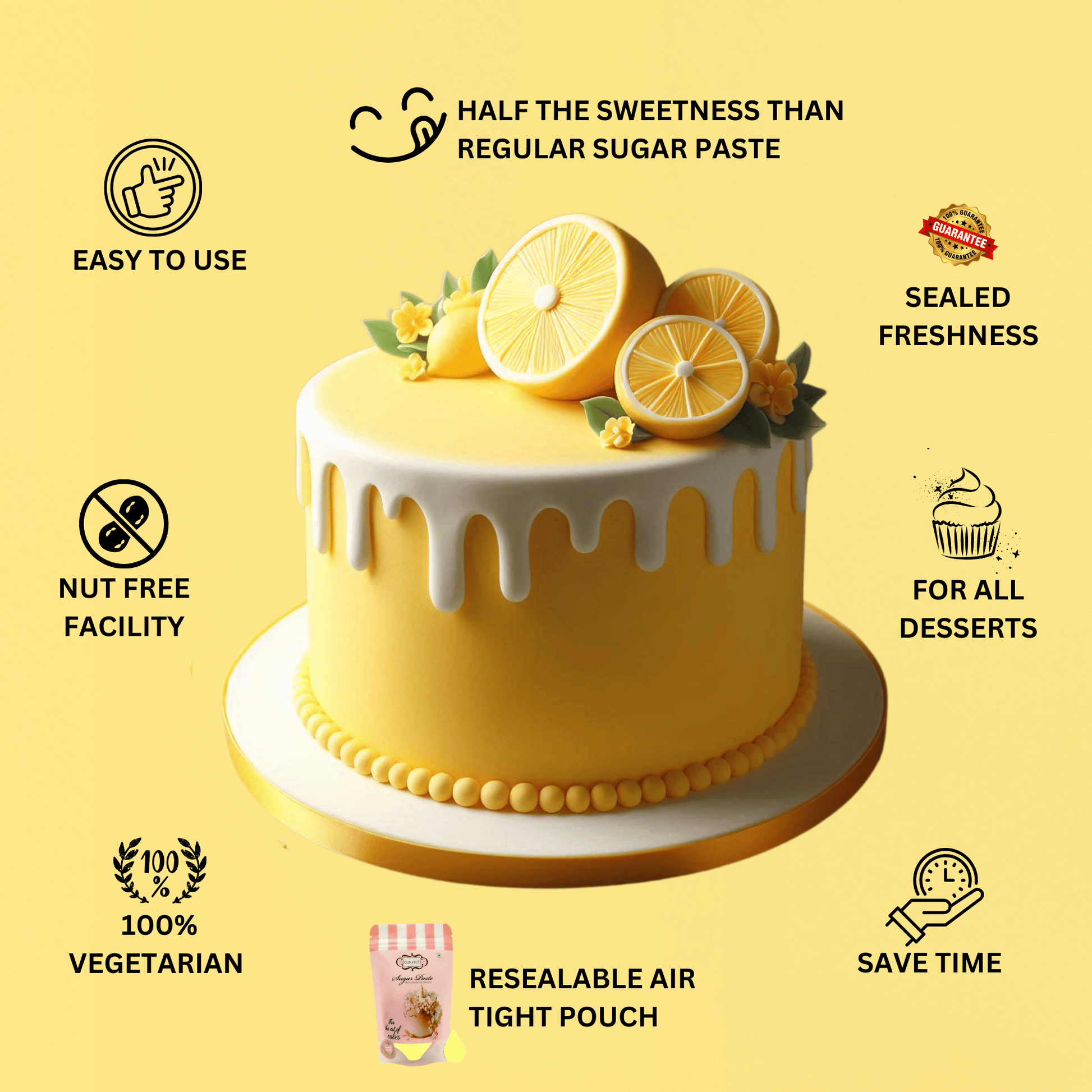 Confect Lemon Yellow Sugarpaste 250 Gms | Edible Fondant for Cake Decorating