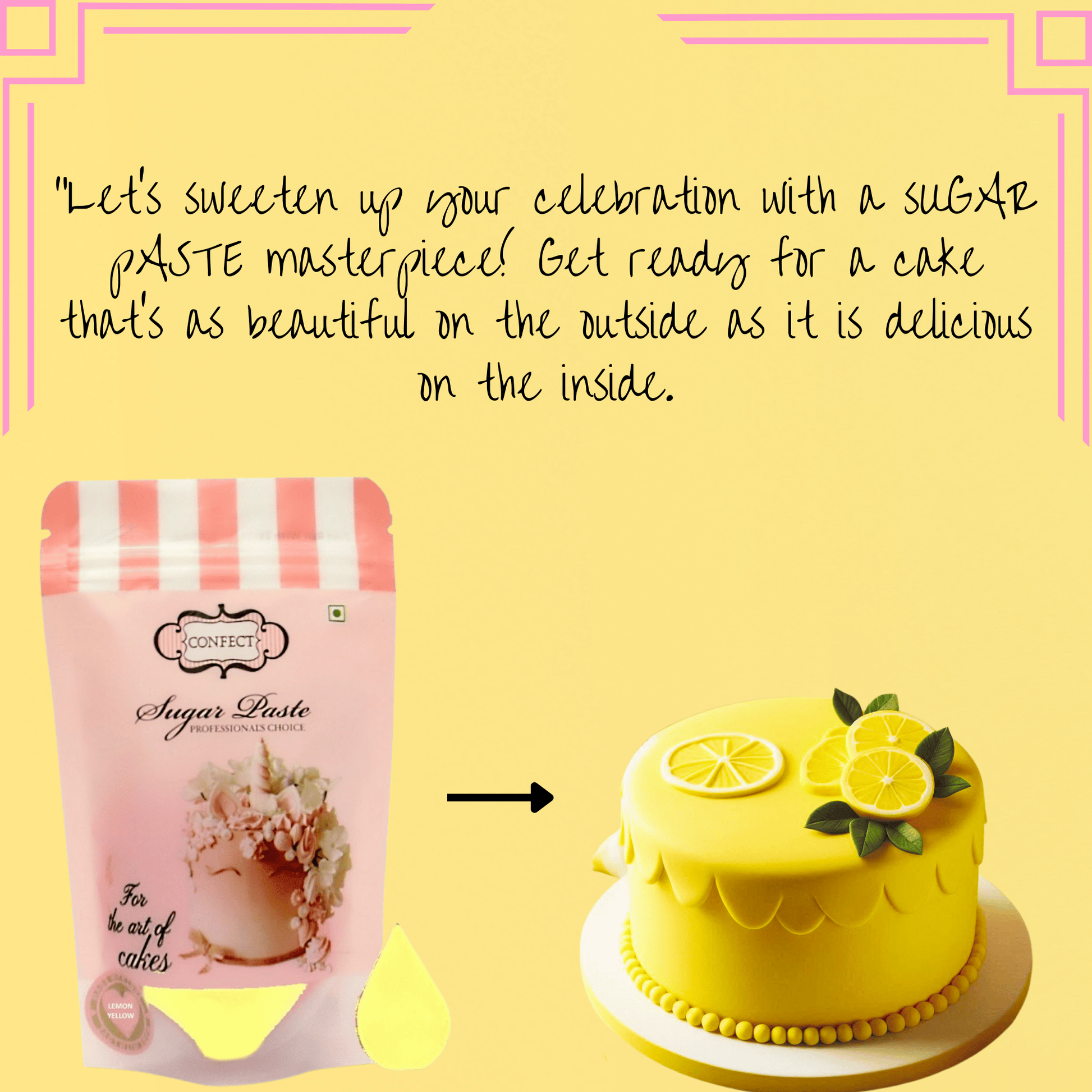 Brighten your baking creations with Confect Lemon Yellow Sugarpaste! This cheerful and vibrant fondant is perfect for adding a sunny touch to your cake designs. Its smooth and pliable texture makes it easy to work with, allowing for intricate detailing and beautiful finishes. Ideal for birthdays, summer parties, or any celebration that needs a pop of color!